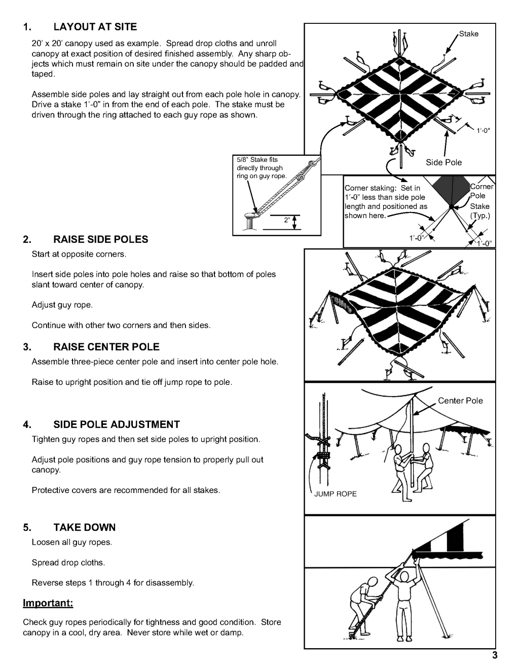 Guidelines for raising and lowering the tent.