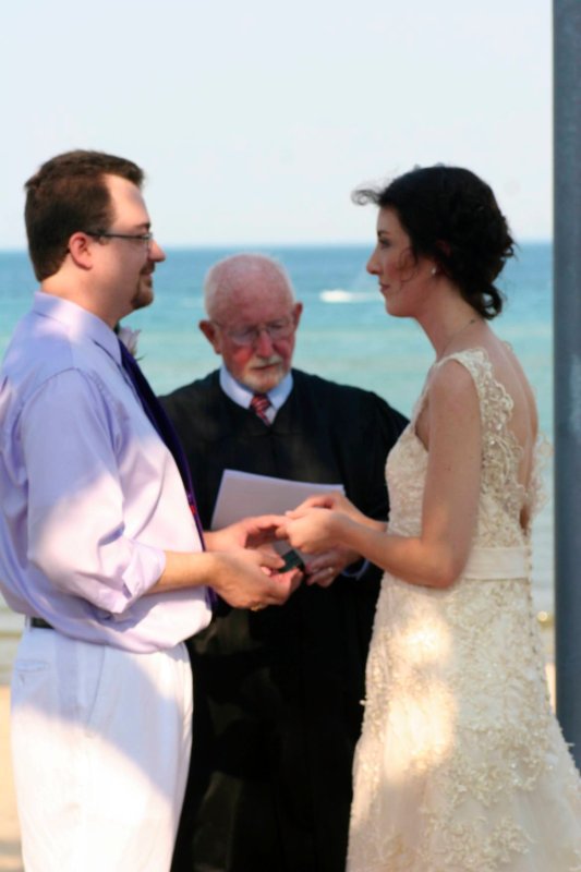 Mr and Mrs George Day IV with Judge Peter Deegan Officiating at the Sherman Beach 8-31-12