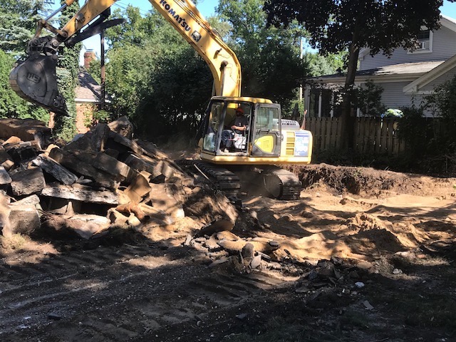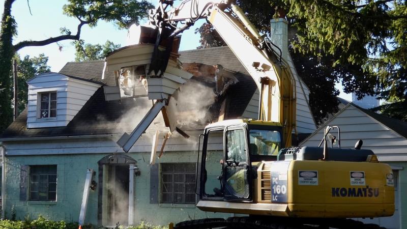 Start of the old Needham house being demolished